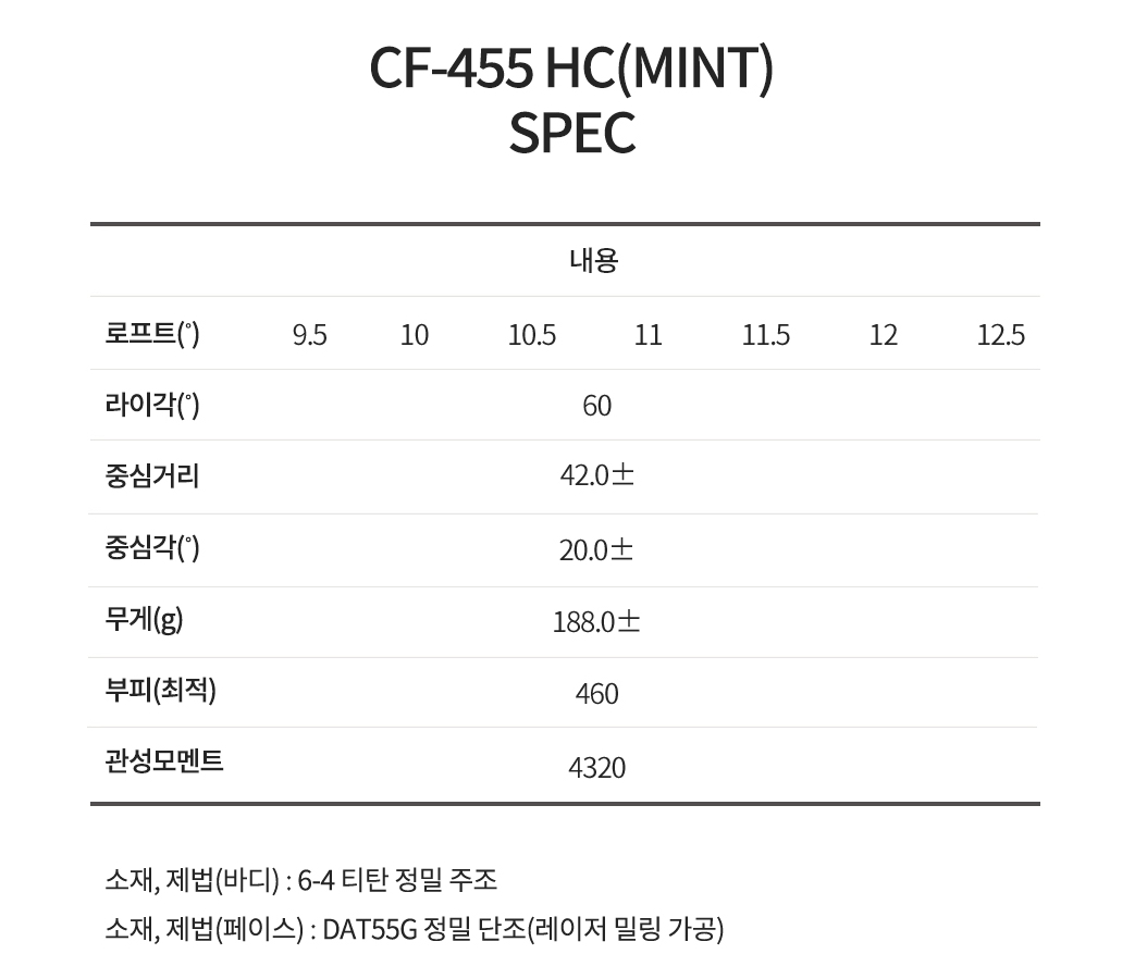 - 소재: 티타늄 합금 / 단조 페이스
