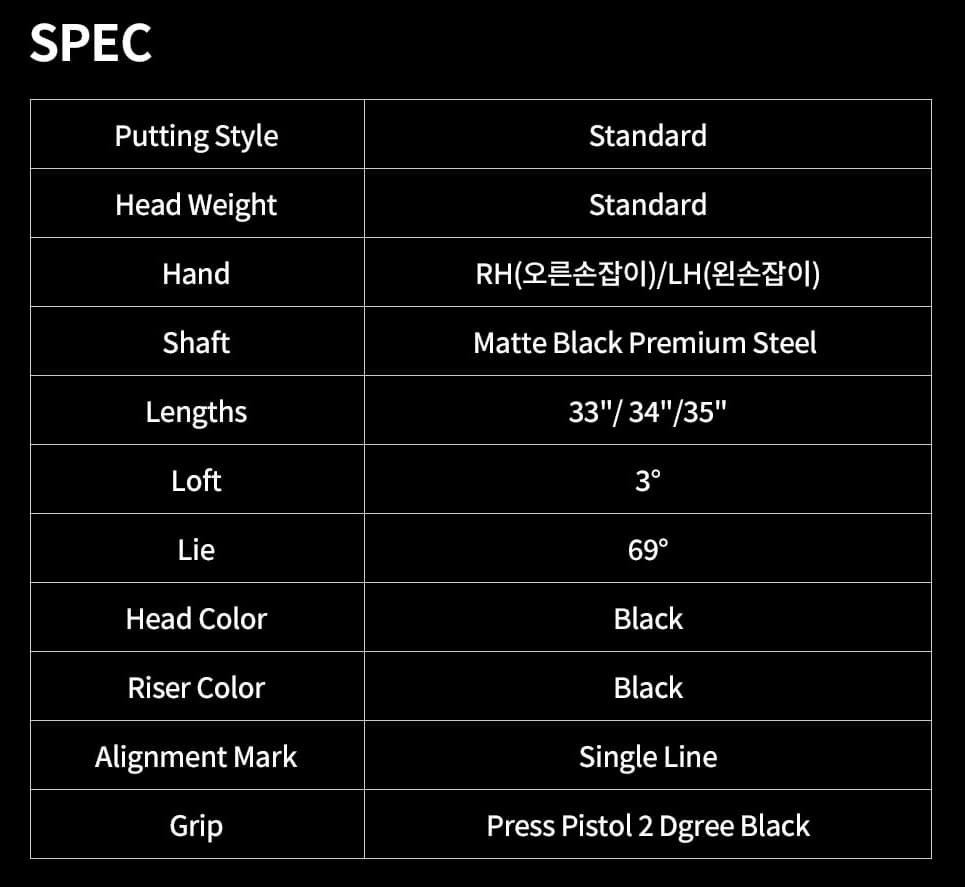고급 블랙 마감 처리가 되어 있어 시각적으로도 굉장히 세련됩니다.- 퍼터 헤드는 알루미늄 CNC 가공