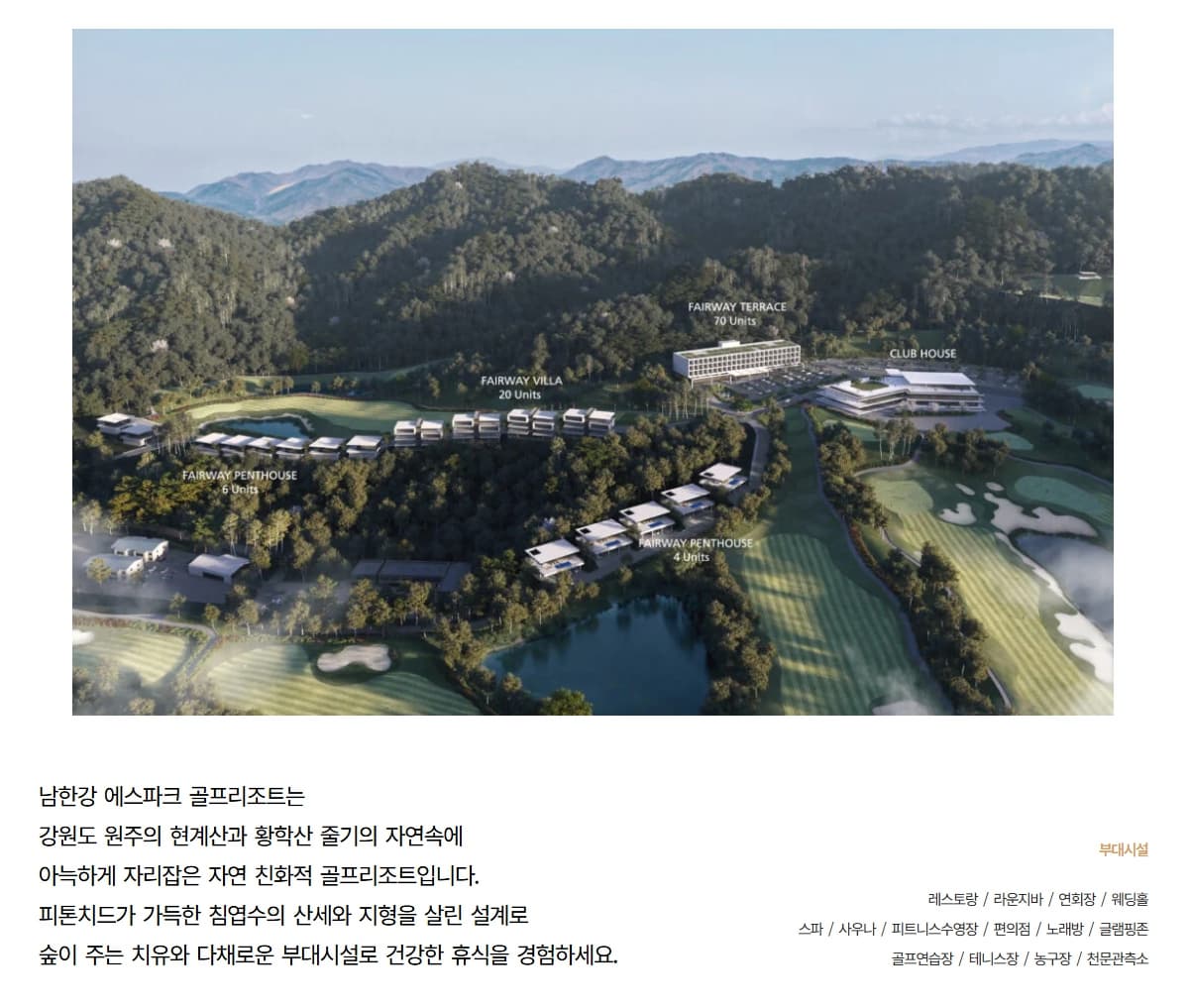 남한강 에스파크 컨트리클럽은 리조트형 골프클럽으로 조성 중인 대형 프로젝트입니다.