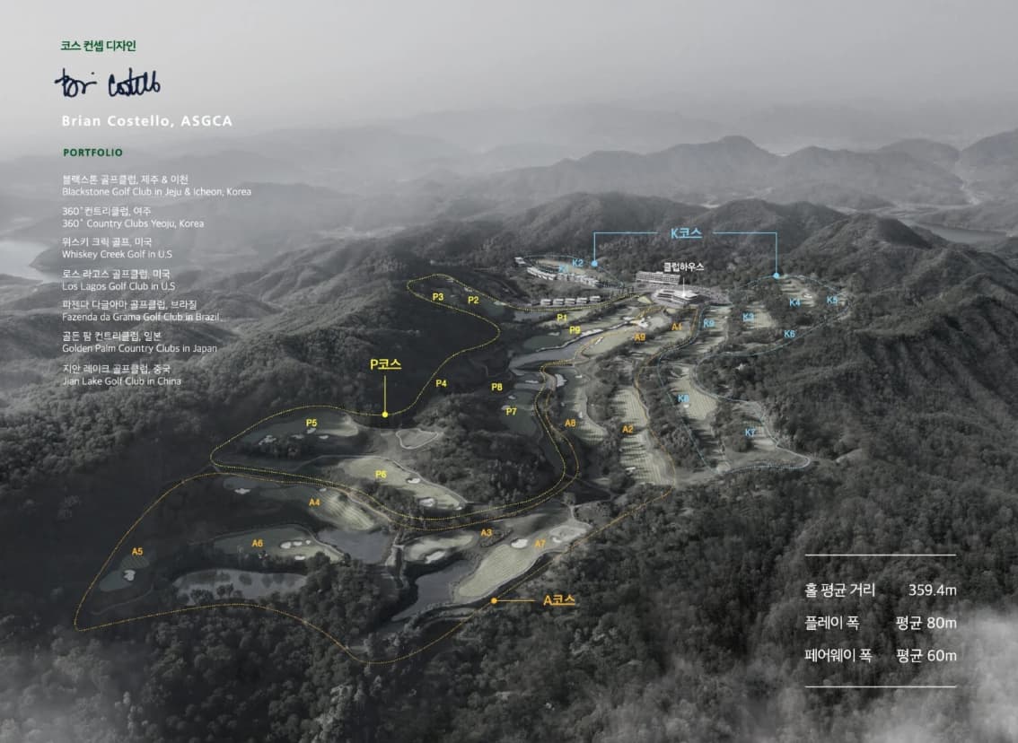- 지형은 해발 300~400m 분지형 지형을 따라 조성되어 있으며, 설계 회사로는 해외 설계사 ‘Schmidt-Curley Design’이 참여했다는 언급도 있습니다.