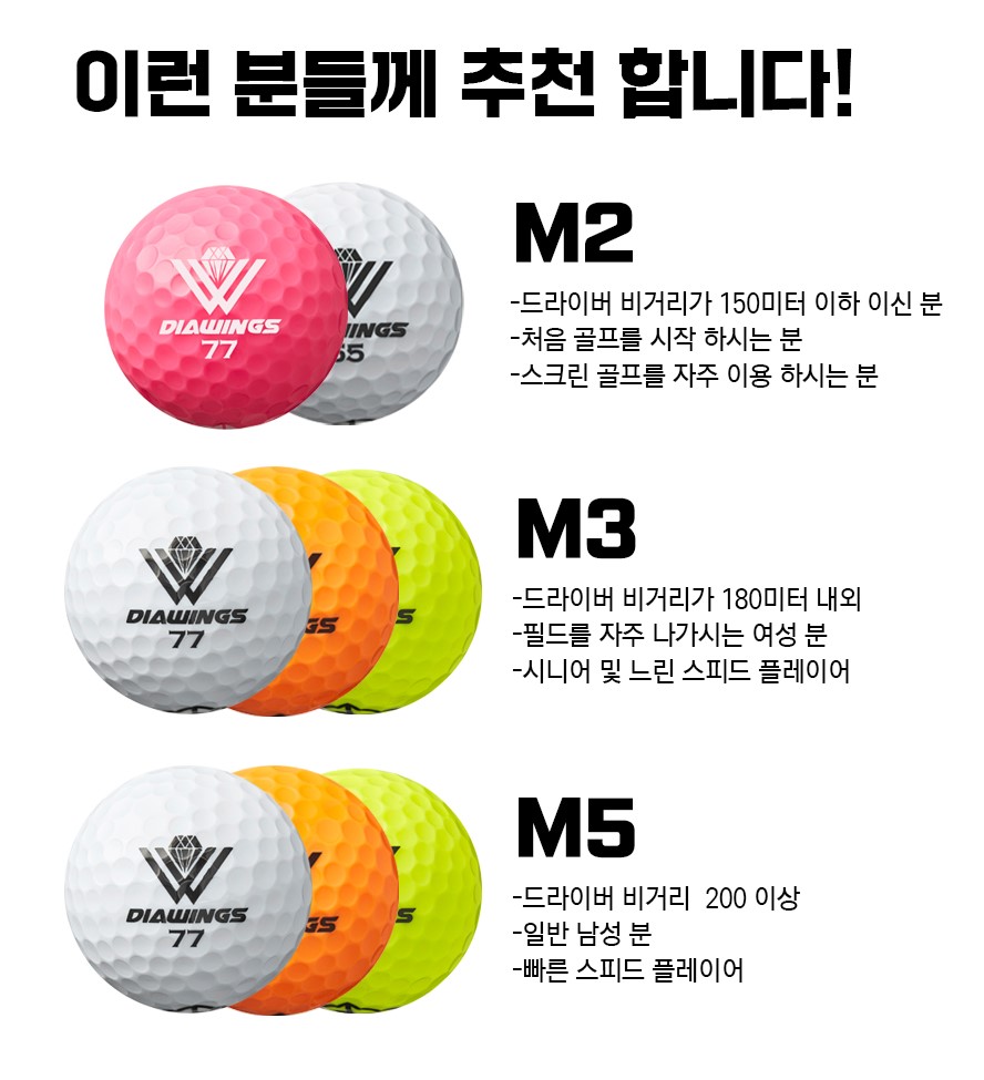 다이아윙스 M2 vs M3 vs M5 비교|어떤 골프공이 당신에게 맞을까?