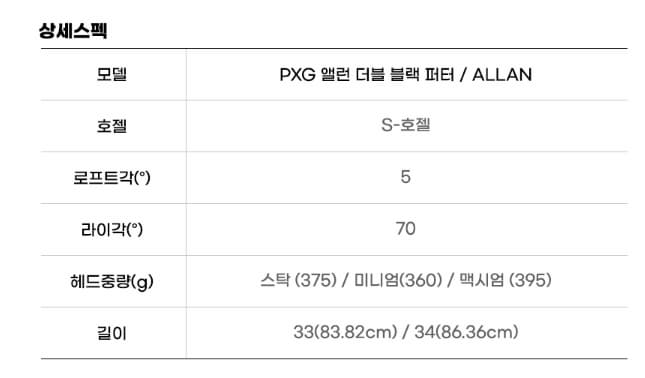 - 국문: PXG 앨런 더블블랙 제로토크 퍼터